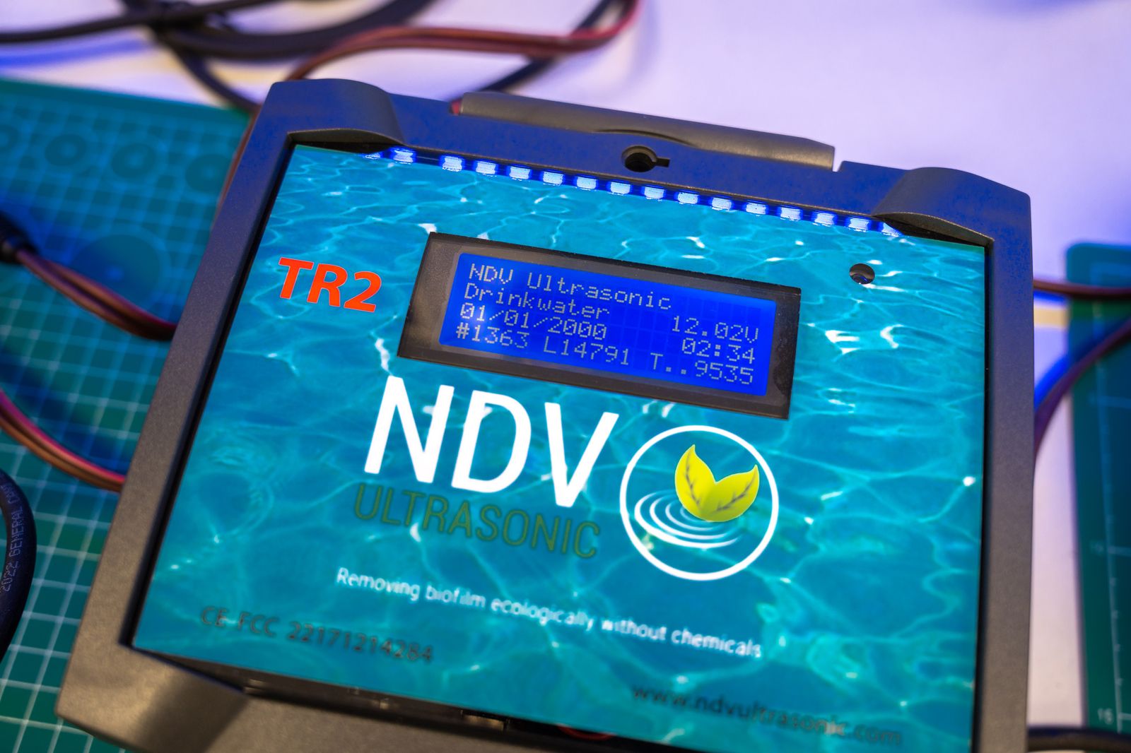 Dit voorkomt gewenning van de biofilm, zodat hij niet bestand kan worden tegen de frequenties, wat natuurlijk zeer belangrijk is voor de werking van de installatie en het resultaat daarvan. We hebben controlboxen met één of meerdere kanalen waar we de transducers op kunnen aansluiten, met of zonder display.